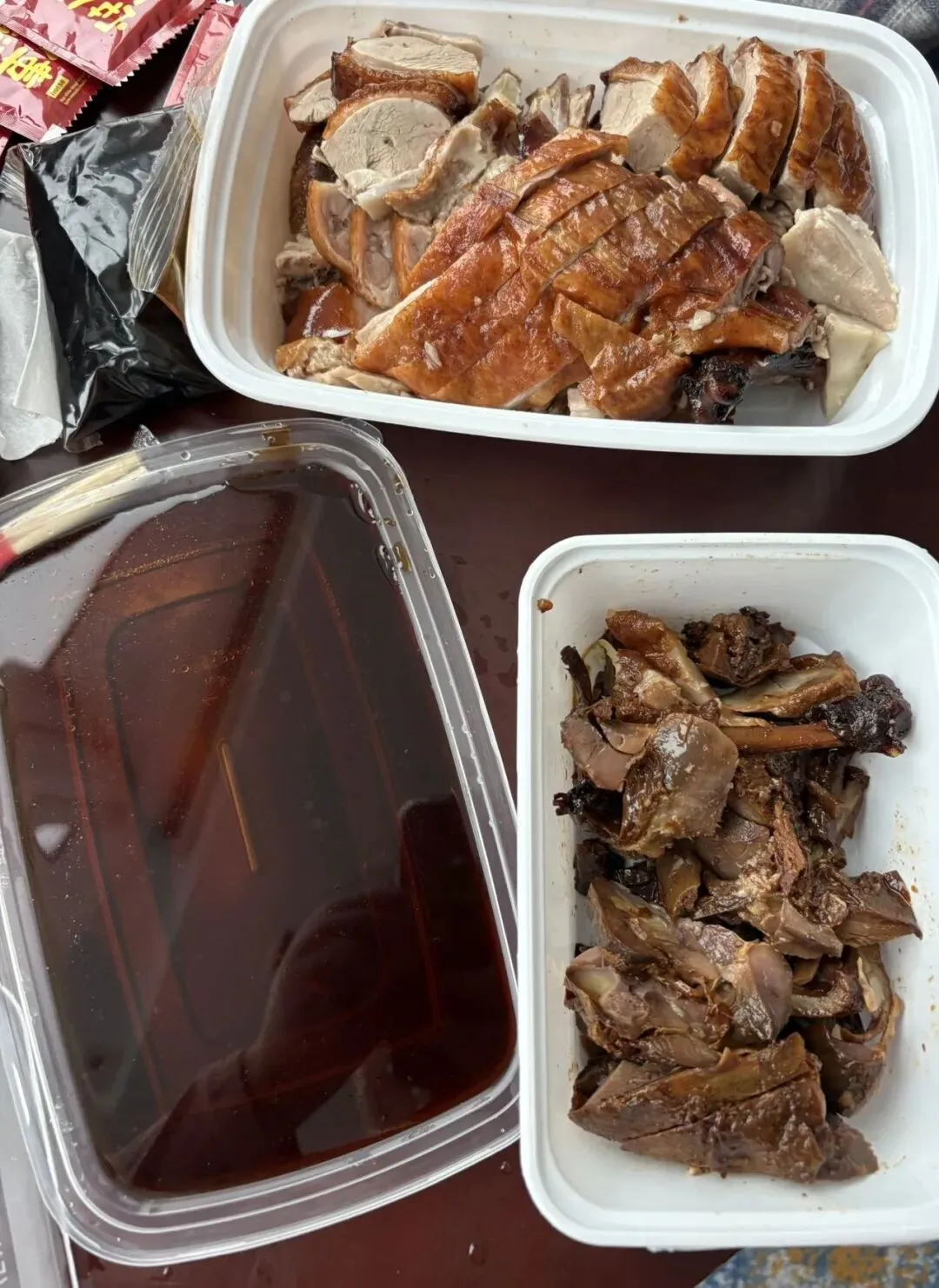 中午终于有机会去吃小红书到处推荐的水西门陈家鸭子,原来都是需要打包带走也无法堂食的,现场试了一下卤汁味道尚可,买了半只鸭和一个酱鸭鸭腿回附近酒店用餐,不是现做的靠微波炉加热了一下皮是不脆的,感觉还是和饭店的味道有差距,不知为何广受推荐,唯一的优点就是便宜。
