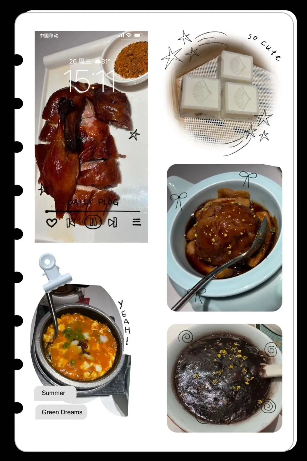 晚餐去老门东的小厨娘,脆皮烤鸭是招牌,狮子头软糯可口,蟹黄豆腐鲜美下饭。吃到一半,忍不住又去对面的叶新鸭血粉丝汤打包了一份端过来——鸭血嫩滑,粉丝筋道,汤头浓郁。两家的味道在桌上摆在一起,我倒觉得,这才是南京该有的样子:不必选哪一家最好,都好吃,都好。