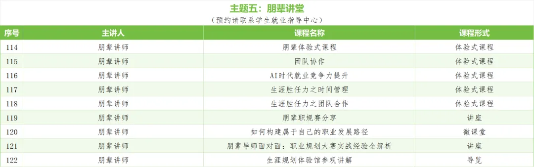 生涯探索、行业认知、能力提升、求职实训及朋辈讲堂