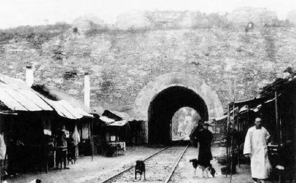 1930年代,南京金川门,小火车从这个门洞进入市区。