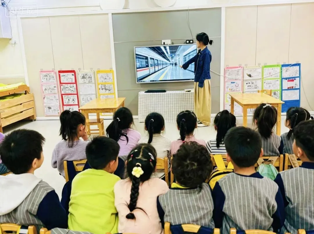 孩子们围坐在一起,通过图片、视频和教师讲解,老师用简易路线图带领孩子们梳理流程,大家还模拟了“刷卡进站”“排队候车”“公交投币”等场景。讨论结束时,每个孩子都领到了一个任务:“明天,请做最细心的观察员。