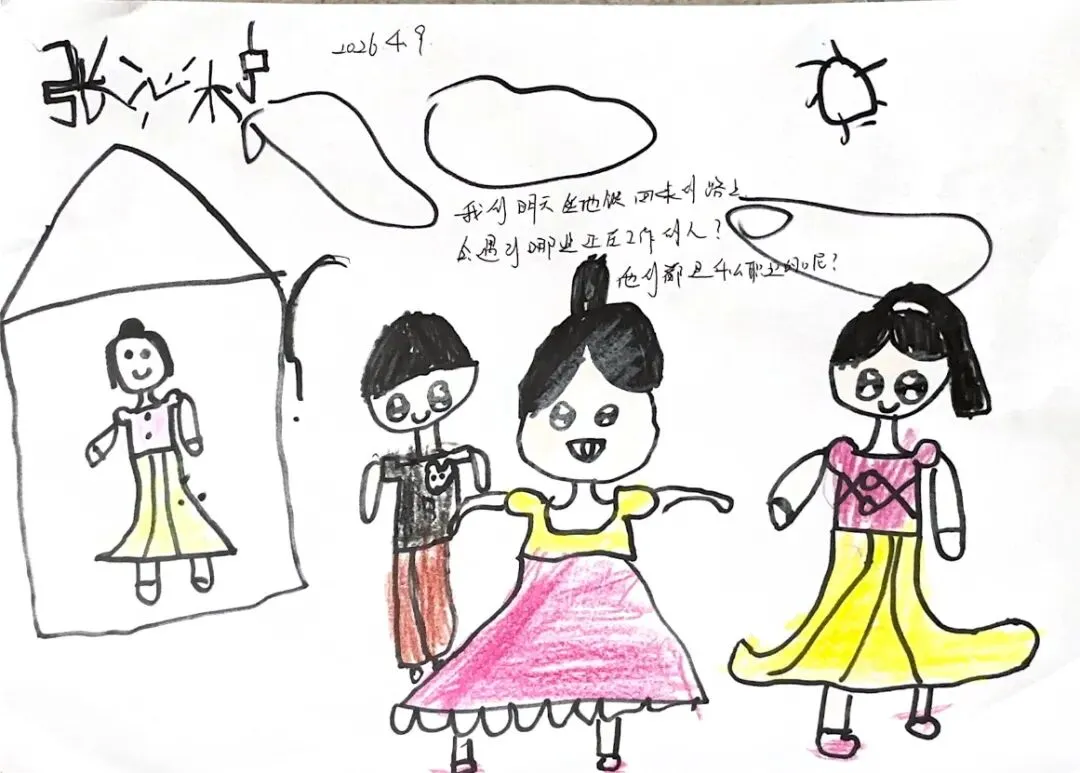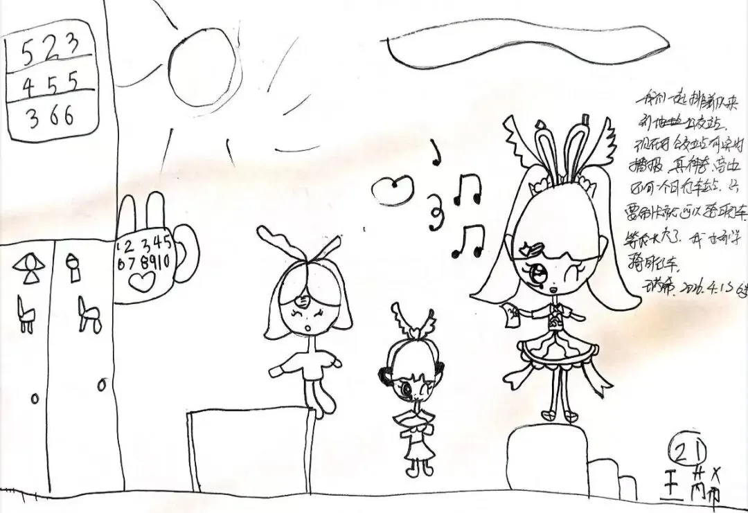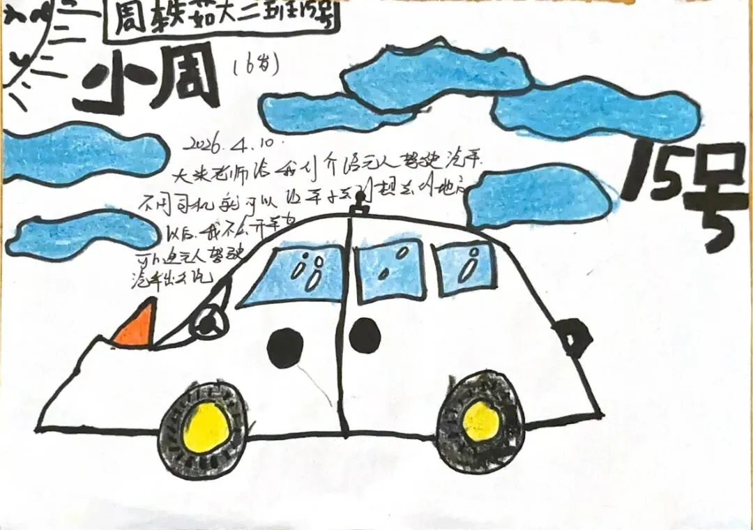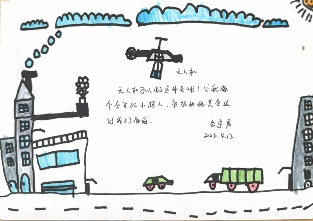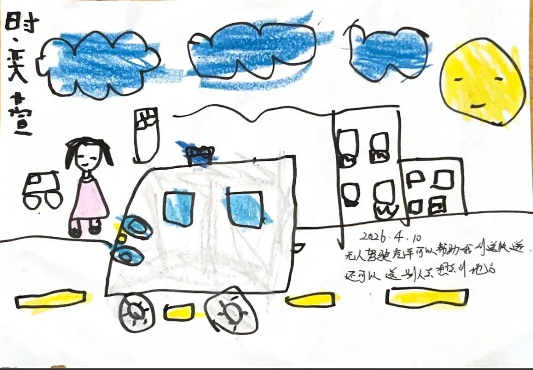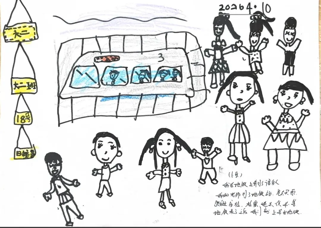 回到教室,孩子们迫不及待地用画笔“写下”自己的见闻。有的画了S8号线的蓝色车身,有的画了公交站台上长长的线路图,还有的画了一排整齐的共享单车。