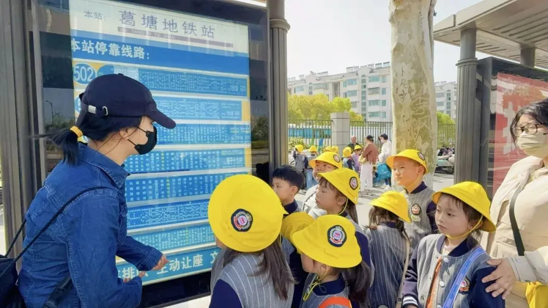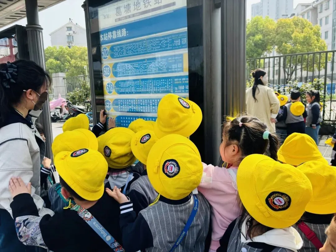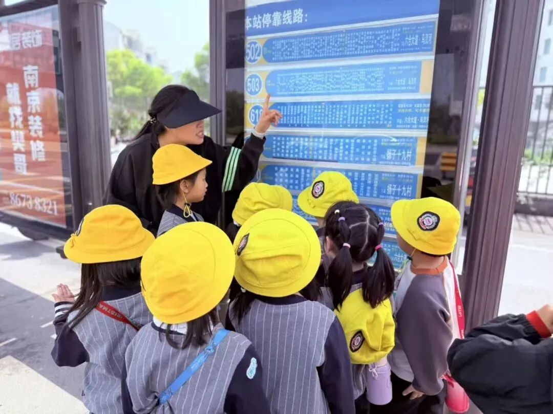 走出地铁口,孩子们来到附近的公交站台。他们发现了什么?