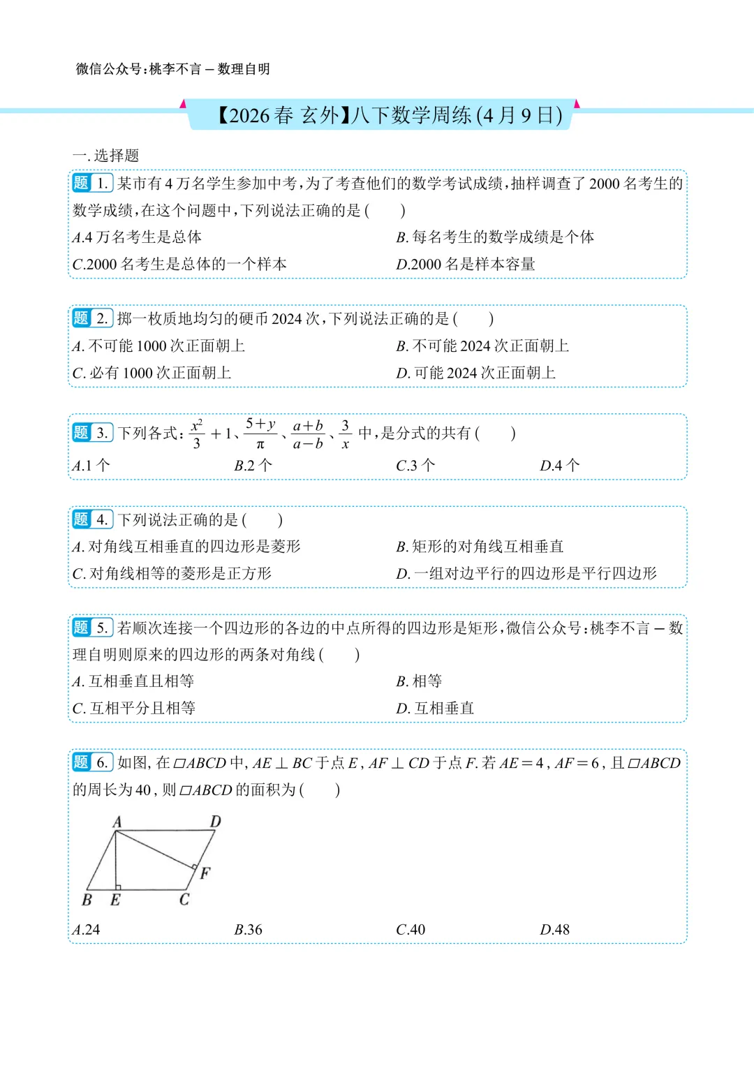 【2026春 玄外】八下数学周练(4月9日)--试题版.pdf