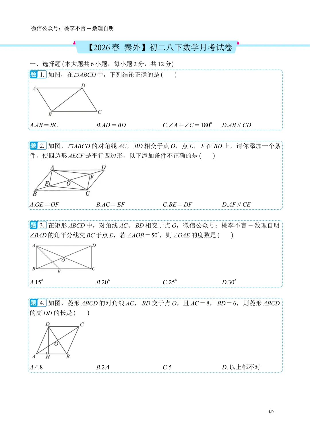 【2026春 秦外】八下数学月考试卷--试题版.pdf