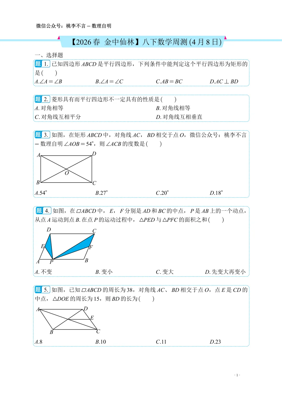 【2026春 金中仙林】八下数学周测(4月8日)--试题版.pdf
