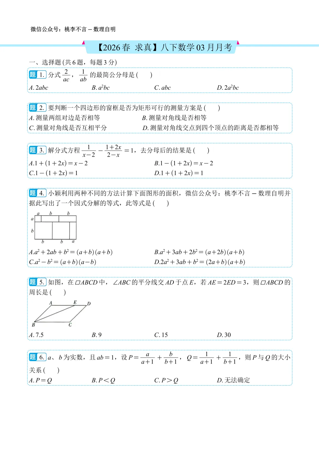 【2026春 求真】八下数学03月月考--试题版.pdf