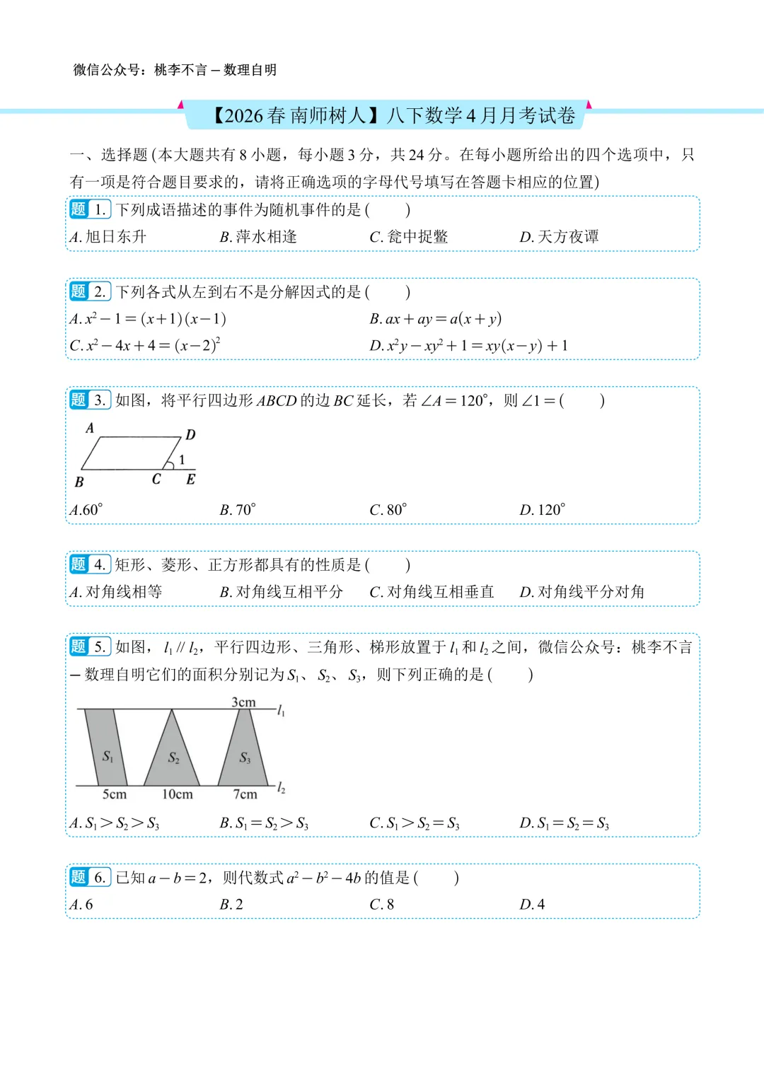 【2026春 南师树人】八下数学4月月考试卷--试题版.pdf