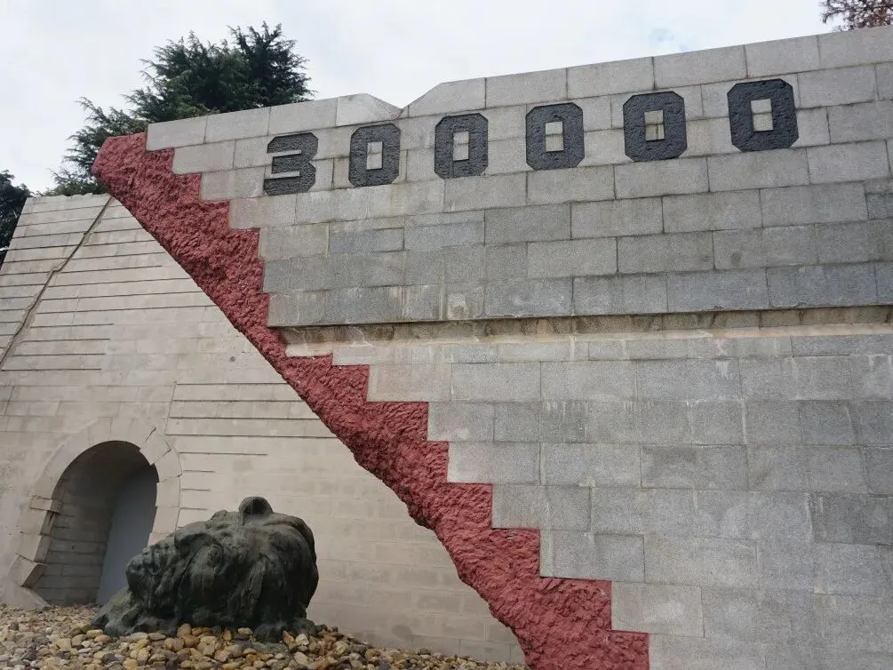 馆外一座座雕塑仿佛在无声的呐喊,师生们的心情也更加沉重。场馆内大量的文物、照片、历史证言、影像资料,完整地阐述着残酷的历史真相。零乱残缺的遗骸白骨,重叠掩埋下扭曲变形、弹穿刀刺的斑斑伤痕,无声地控诉日军的残暴蹂躏。醒目的数字“三十万”在警示后人永远不要忘记这段历史,也告诫后辈,要珍惜如今来之不易的和平生活。