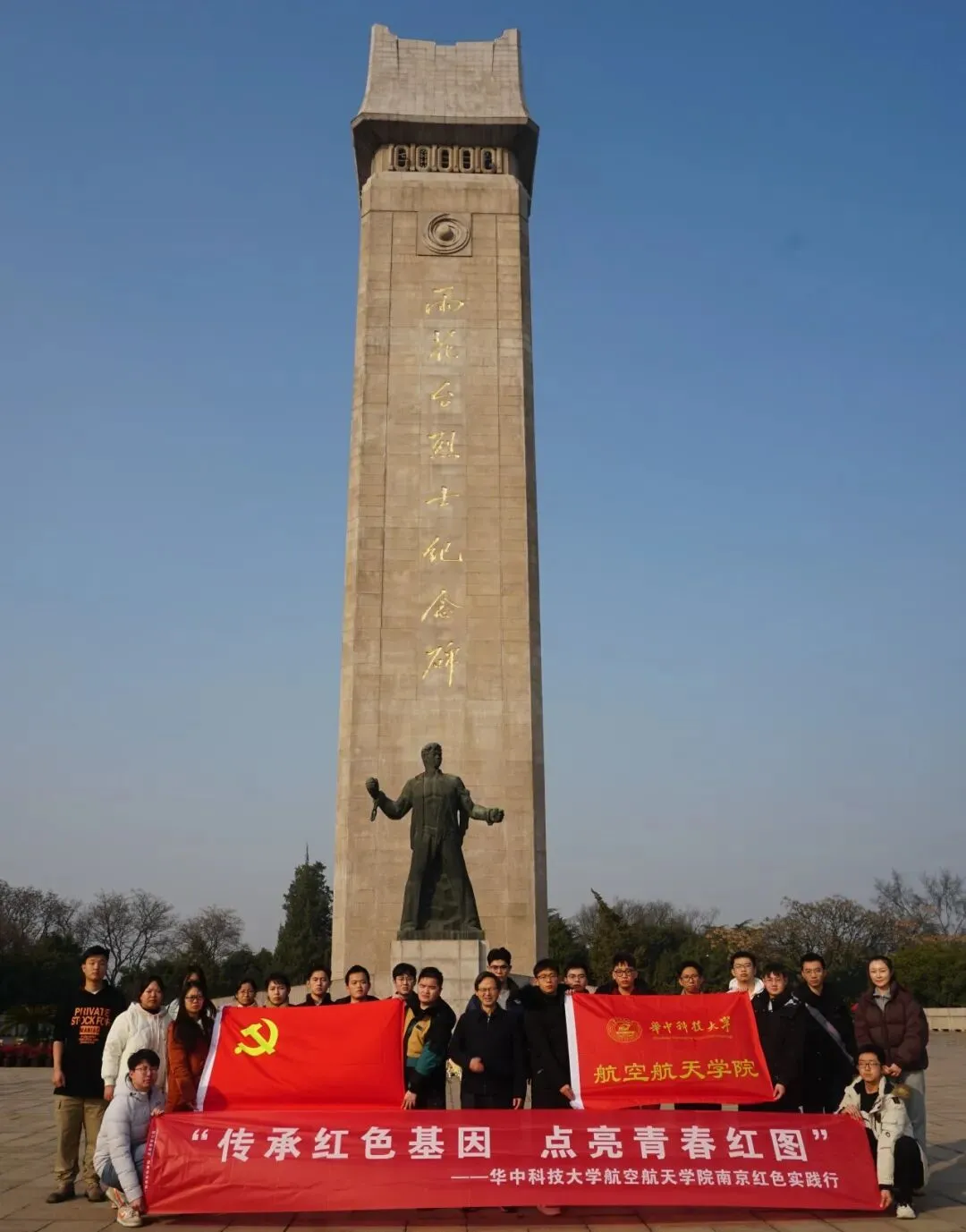为深入学习贯彻党的二十大精神,了解党的发展历程和伟大事迹,传承红色基因,增强学生党员责任和使命感,厚植爱国情怀。2023年12月26日至27日,航空航天学院赴南京开展主题为“传承红色基因,点亮青春红图”的红色学习实践活动,旨在以“看”“学”“辨”“传”的形式开展“行走的微党课”。本次实践活动由学院院党委副书记、纪委书记宋建涛,院党建辅导员张涵、就业专员薛茜茜带队,学院本、研党支部骨干共20余名学生参与。
