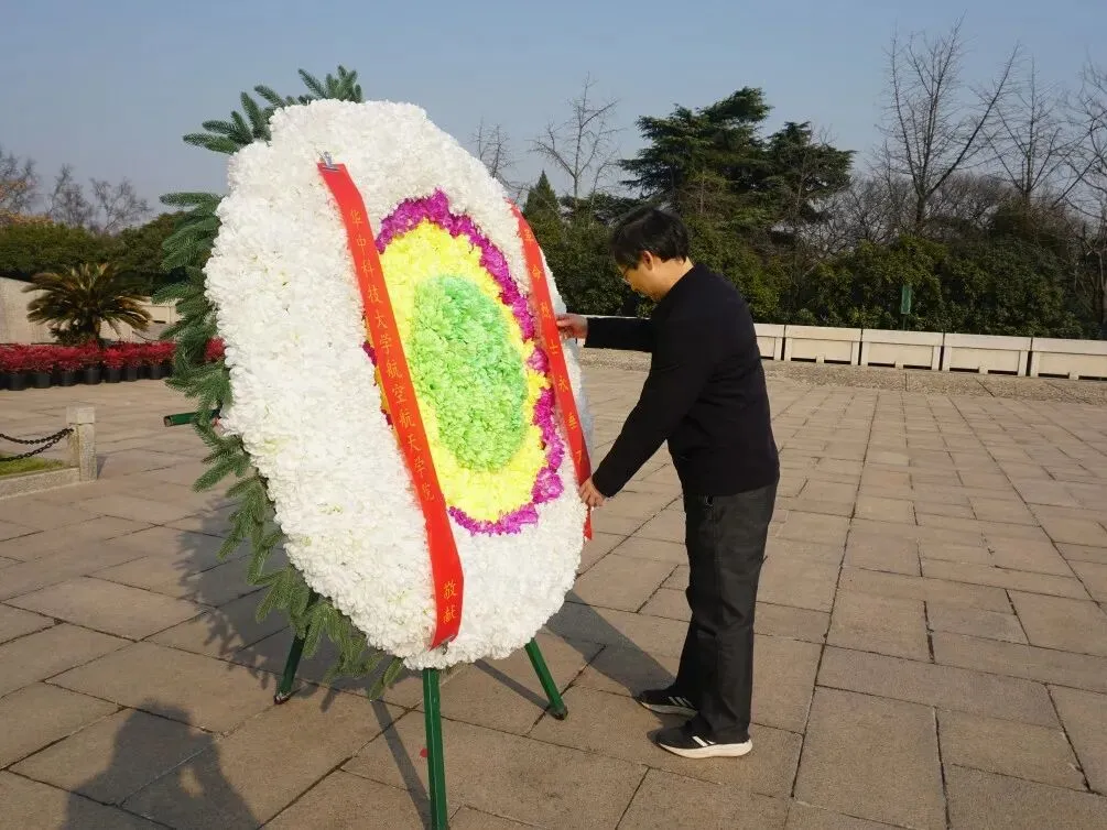 雪后初霁,青松挺立、翠柏环抱,雨花台烈士陵园庄严静穆,烈士纪念碑巍峨高耸。全体人员列队向雨花台烈士纪念碑敬献花圈,重温入党誓词并齐声高唱中华人民共和国国歌,国歌唱毕,全场肃立,向为民族解放、国家富强和人民幸福英勇献身的革命烈士三鞠躬。学院副书记宋建涛上前整理挽联。