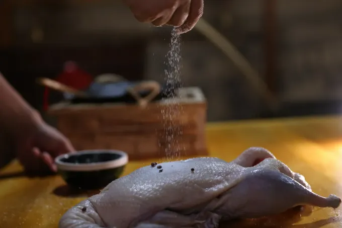 湖熟自古沟渠纵横、鱼米丰饶,是养鸭天然沃土,明代回民迁居至此,改良腌制技艺,制成“白油板鸭”,皮白肉嫩、香酥不腻,逐渐风靡全城。清代《江宁新志》载:“购觅肥鸭,用微暖老汁浸润,火炙,色极嫩,秋冬尤佳,俗称板鸭。其汁数十年者,子孙收藏为恒业”,百年老卤、世代相传,正是南京板鸭风味千年不变的密码。