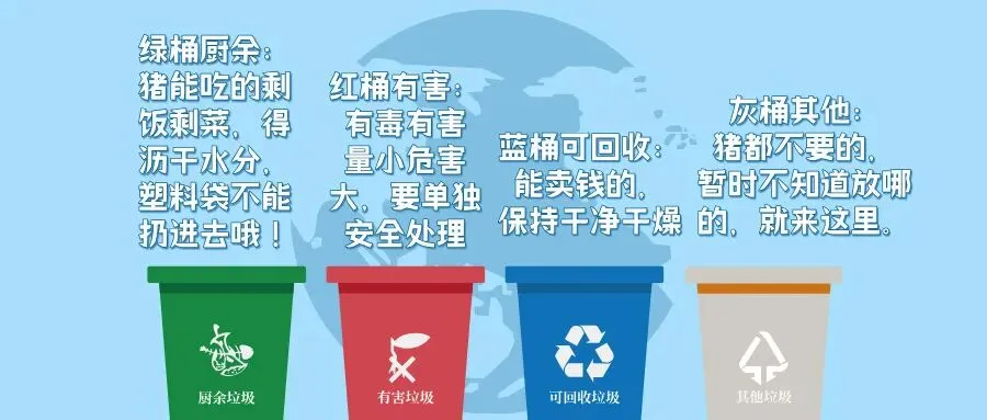 绿桶装的是厨余,灰桶剩下其他物……”