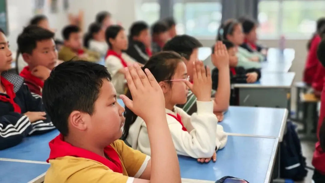 同学们把手举得高高的