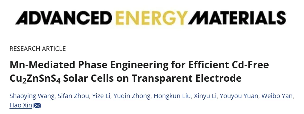 Shaoying Wang et.al Mn-Mediated Phase Engineering for Efficient Cd-Free Cu2ZnSnS4 Solar Cells on Transparent Electrode Adv. Energy Mater. 2026