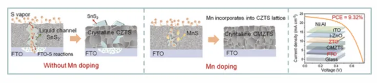 掺氟氧化锡(FTO)作为Cu2ZnSnS4(CZTS)太阳能电池的背电极,在构建集成光伏(BIPV)和串联电池应用方面具有巨大潜力。然而,严重的SnS2相会降低器件性能。近日,南京邮电大学辛颢报道了一种降低CZTS相纯度的Mn掺杂策略。