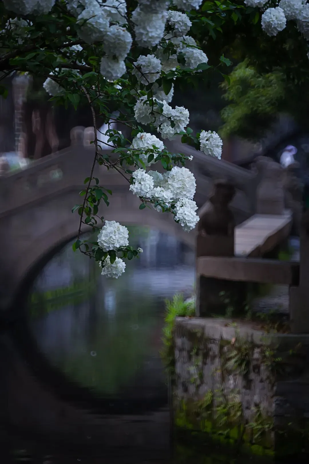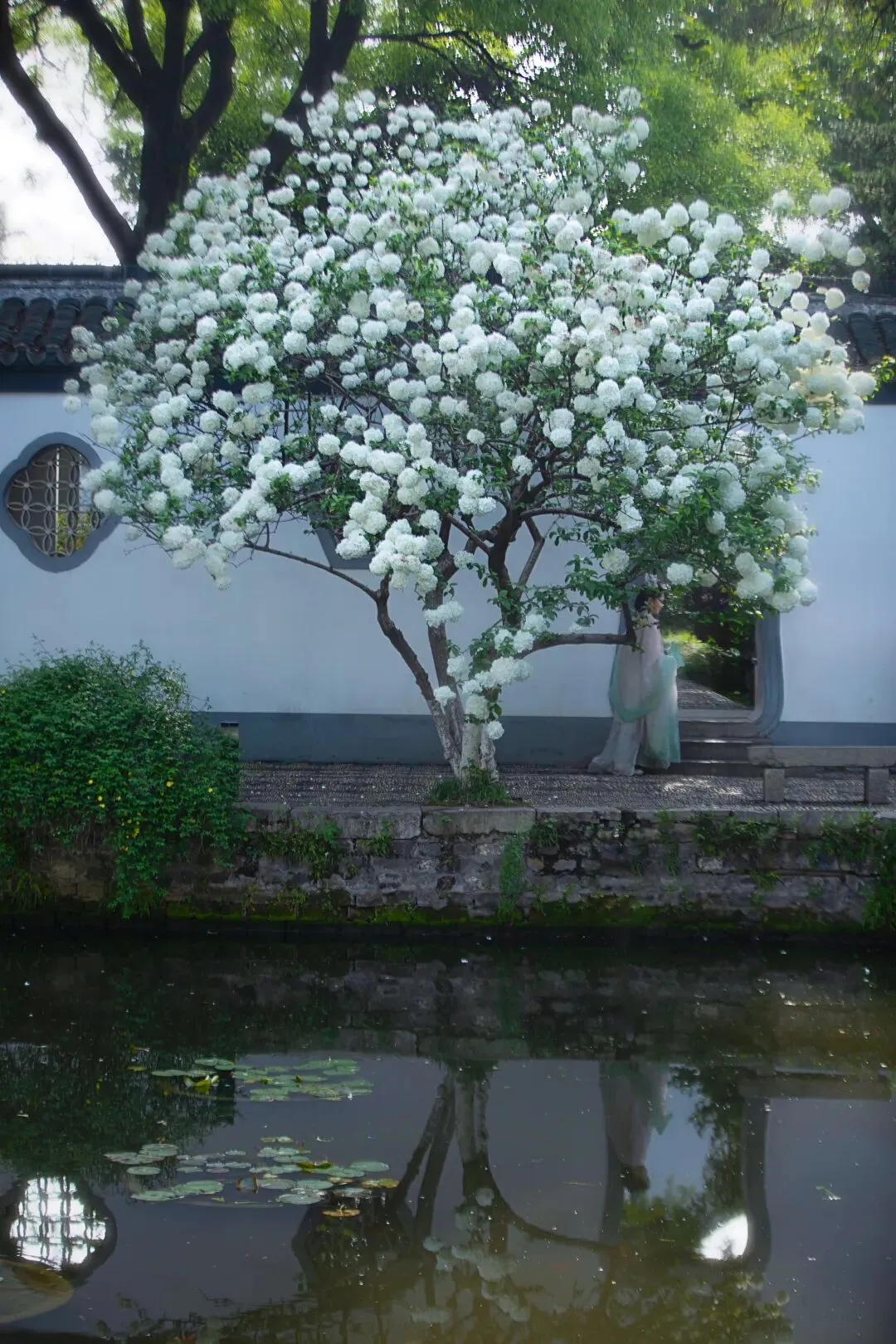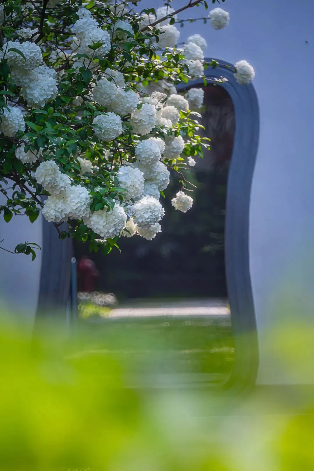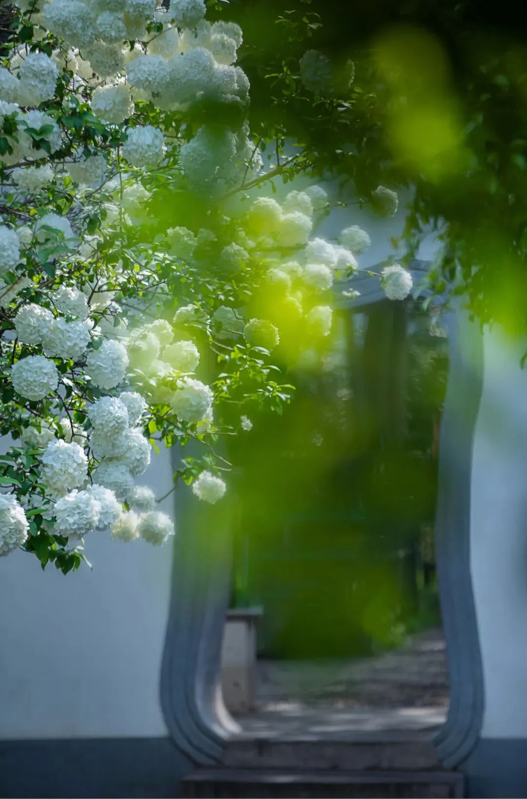 木绣球缀满枝头,如落雪覆枝,清雅动人。