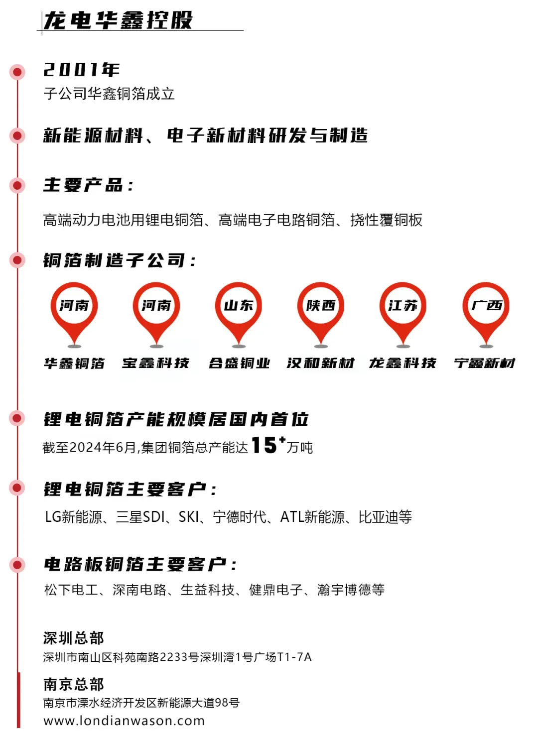 南京龙鑫电子科技有限公司是龙电华鑫集团旗下的企业,成立于2020年11月11日,主要产品为4-8μm高强度锂电铜箔,铜箔是新能源汽车的电池负极上的关键材料。公司致力于成为全球新能源材料制造领域引领者,产品定位服务于LG化学、韩国SK、宁德时代、ATL、比亚迪等新能源锂电行业高端客户。