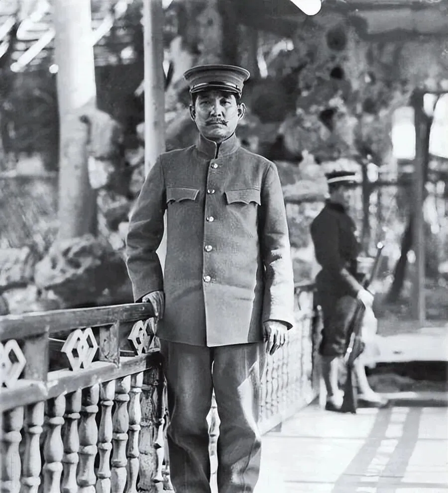 再看这张,孙中山站在栏杆边,身上的军服颜色暗沉,扣子整齐排开,脸正着,没什么笑意,帽檐压得很低,身后随从一边守着枪,石板路边还有点积水痕迹,仔细一比,能觉得这身打扮和清朝时候的威风完全两样,没有龙袍,没有高跷靴,也没人鞠躬作揖,冷风一吹,帽子下那个剪得利落的短发,不声不响地就让人觉得新一个时代拧开了大门。